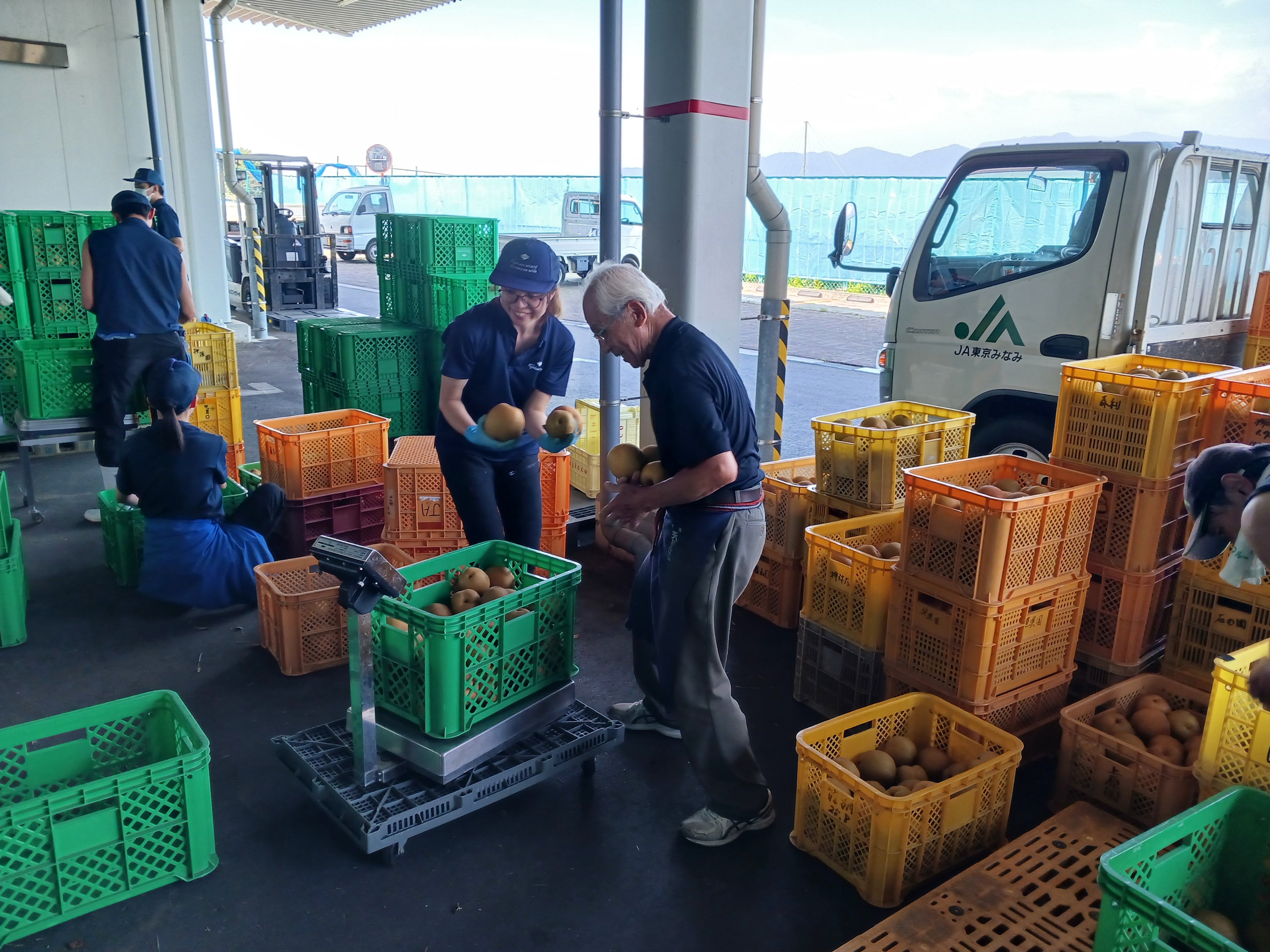 稲城の梨生産組合では、8月27日に山梨県甲州市のフジクレールワイナリー㈱に梨ワインの原料となる梨「稲城」を納品しました。